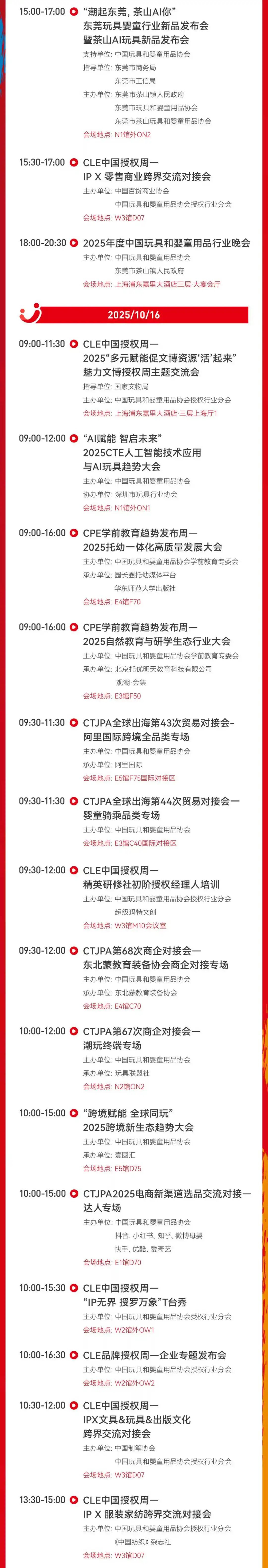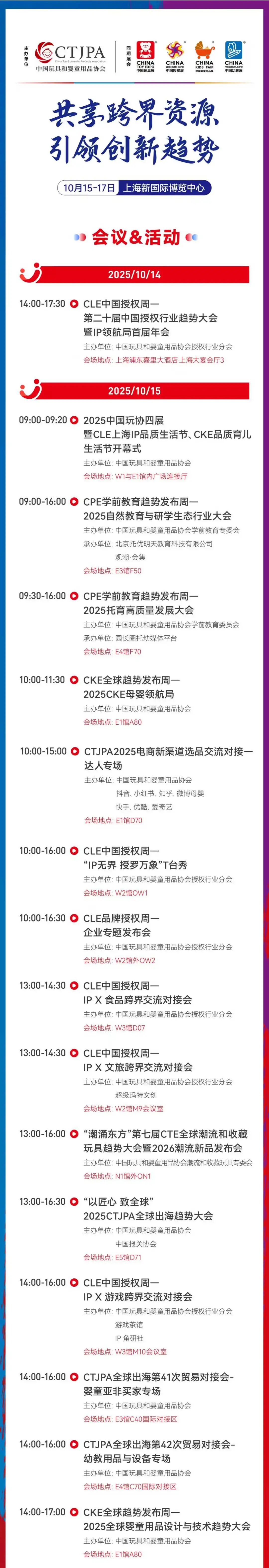 一如既往,CLE中国授权展将与CTE中国玩具展&潮玩展、CKE中国婴童用品展、CPE中国幼教展同期举办,覆盖品牌授权、玩具潮玩、婴童用品、学前教育四大领域的大会论坛、国内外买家采购洽谈会、电商新渠道选品对接会等精彩活动争相亮相,诚邀各领域专家、跨界精英相聚现场,共享跨界资源,洞察行业趋势,探寻发展机遇,携手展望未来。