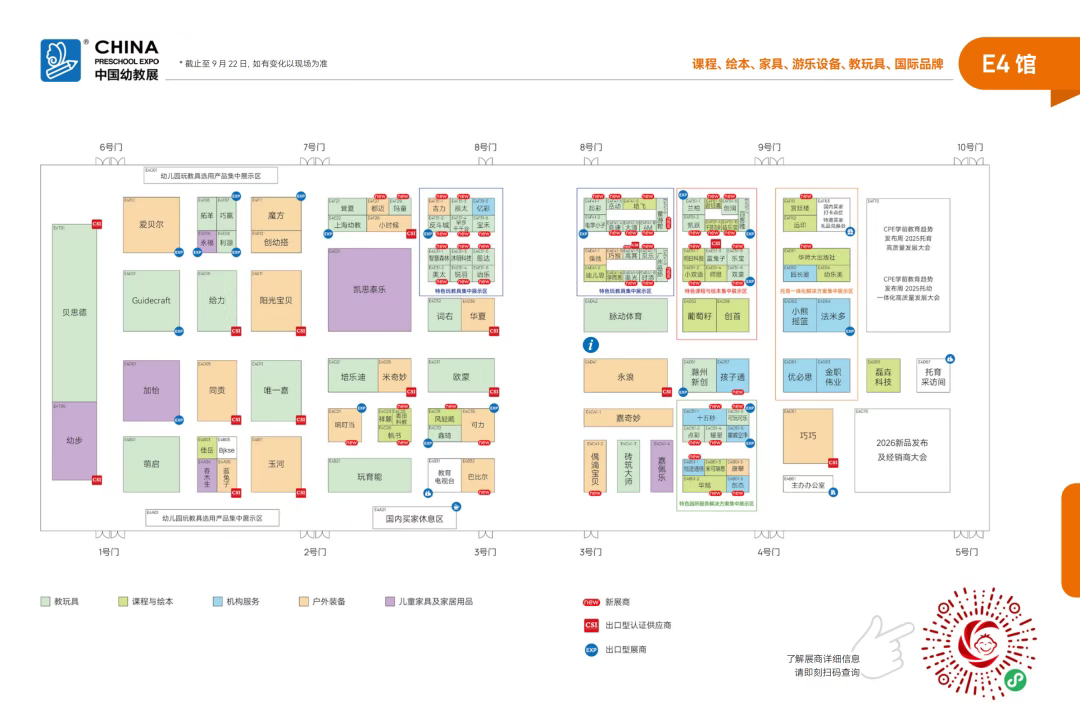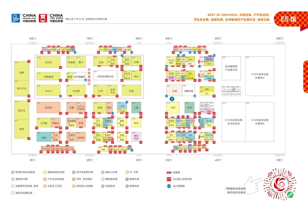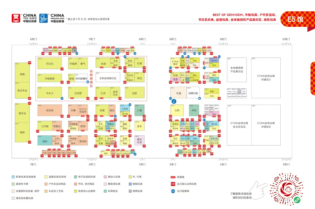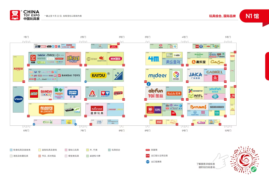 作为国家级行业协会主办,国内外展商和买家首选,全球领先的玩具潮玩、婴童用品、授权、幼教专业化和国际化商贸平台,中国玩协四展吸引了全球41个国家和地区以及30大玩具、婴童用品主产区2629位展商携5426个品牌、2600+全球正版IP参展,展览面积覆盖上海新国际博览中心全部展馆达23万平方米,齐聚国内外10万+专业观众。接下来,让我们提前了解下具体展馆分布和展商点位情况,实现高效逛展!