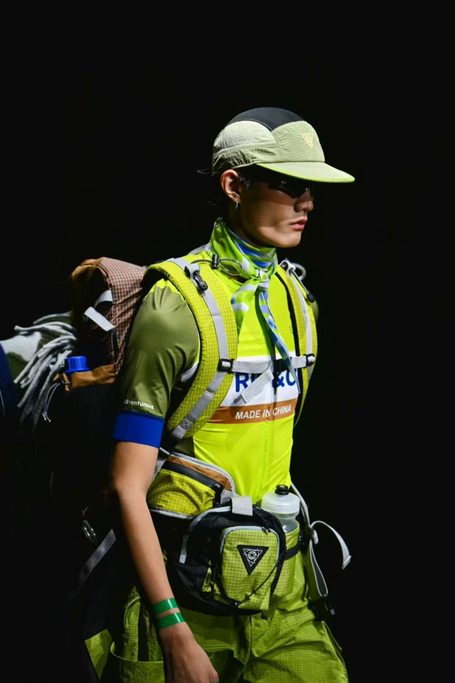 TRIP&CO 通过“极境守护者”“文明胶囊”“幻化异维” 三大系列,将品牌理念转化为可感知的时尚语言:“极境守护者” 系列作为品牌功能美学的核心载体,该系列以 LifeLabs 温控面料为基石,利用 WarmLife® 与 CoolLife® 技术强调轻量化、高保暖与可持续性。例如,冬装通过减少30%填充材料仍能保持同等保暖效果,彻底打破了传统设计的臃肿感。不同于传统户外品牌对 “专业感” 的刻意强化,TRIP&CO 在此融入高饱和度撞色与都市派克廓形,让能适应 - 65°C 至 + 45°C 极端环境的服饰,既能应对突发天气,也能适配通勤、露营等多元场景。黄俊勋在秀后解释道:“我们不想让‘保暖’‘防晒’成为妥协时尚的理由,这一系列就是要证明,专业机能与日常美感可以完美共生。”