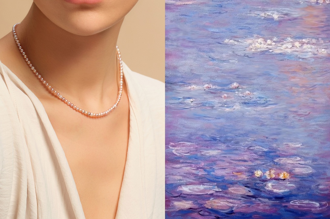 印象派绘画以独特的光影和色彩变化,成为了众多艺术家灵感的源泉。印象派大师莫奈笔下睡莲池的光影变幻,被MiNG名皇珠宝巧妙捕捉于「莫奈光影-油画睡莲珍珠项链」中。设计师以淡水小米珠为画布,通过渐变混彩的珍珠排列,再现了莫奈画作中朦胧而流动的色调。珍珠本身的温润光泽,仿佛睡莲池水面倒影中的光斑,轻盈而诗意。这种对色彩和光影效果的精准把握,让人在日常生活中也能随身携带一抹印象派的浪漫。