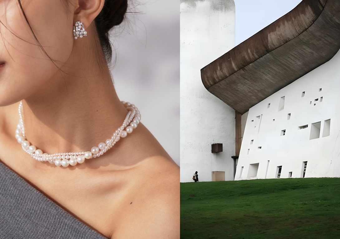 建筑是凝固的音乐,它蕴含着独特的结构韵律。而MiNG名皇珠宝将这份韵律转化为珠宝的立体语言。「光年布朗系列-朗香教堂耳钉」便是杰出代表之一。灵感源自法国朗香教堂那极具现代感的曲线与层叠结构。耳钉以错落的珍珠、锆石与金属线条,构建出富有空间感的立体造型,既有建筑的稳重,又不失珠宝的灵动。耳拍设计更增强了佩戴的稳固性,让艺术与实用完美共存。