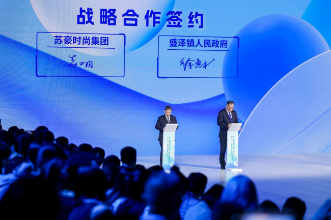 苏豪时尚集团和盛泽镇人民政府战略合作签约,双方将在海外市场开拓、展会资源共享、产品研发创新、数字平台共建四大领域深化协同,设立苏豪时尚·盛泽面料海外展贸中心和苏豪时尚盛泽采购中心,共建开放共赢产业生态。