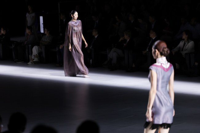设计风格以清代传统服装装饰织物“云肩”为灵感出发,融合了中式的旗袍特点与西式的基础廓形,演绎时尚摩登东方新意境。