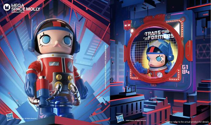 变形金刚作为长青 IP,除了围绕经典内容进行延展外,孩之宝也通过跨界联名拓展 IP 边界。布鲁可的萌酷版 MEGA 擎天柱布朗熊联名款及其七夕限定,一经推出就破圈受到女性消费者的喜爱;泡泡玛特的擎天柱x MEGA SPACE MOLLY 1000%一经上线便荣登抖音潮玩Top 1,成为玩家收藏的一款产品,可见品牌的可塑性及泛人群属性能够吸引更多不同领域的消费者关注。