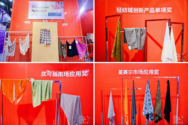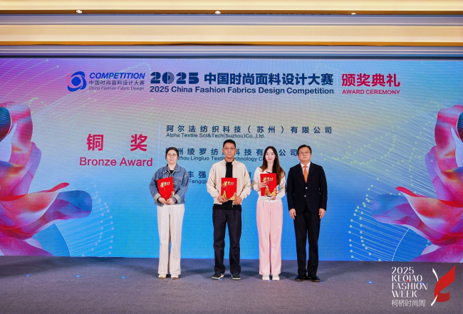 为进一步激活产业创新活力、展现柯桥纺织产业特色,今年大赛再度与柯桥携手设立“中国轻纺城创新产品单项奖”。该奖项评选出了融合独特加工技术与环保理念,具备丰满和谐配色与鲜明时尚风格,具有差异化竞争力的面料。这一奖项的设立,强化了本地企业的创新积极性,成为展现柯桥纺织企业高端化、时尚化转型的重要窗口。