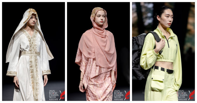 在为期一周(11月6—12日)的时尚盛宴中,18场品牌发布会汇聚了生态自然、传统国风、个性前卫、现代人文、未来探索等多元时尚风格,如同一部交响乐的不同乐章,共同奏响了“洄响”主题的丰富内涵。这些风格迥异却又内在统一的呈现,不仅全面展示了柯桥纺织面料应用的广度与深度,更彰显了本土设计力量在全球化语境下的独立思考与创造性转化。