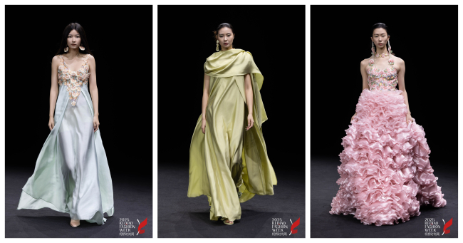 永恒·葵夏&Shalimar Zhang 2026新品发布会以金色、经典黑与粉色构建多元色彩矩阵,分别诠释华贵、神秘与浪漫。全系采用重工刺绣、亮片与立体暗纹等工艺,融合传统手工与现代设计。风格定位复古奢华与现代摩登相结合,打造适用于高端晚宴与时尚派对的永恒礼服。