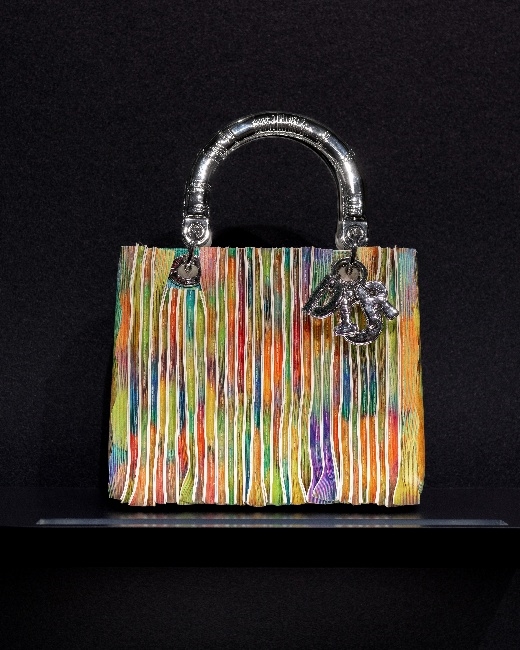 最后,在本次进博会中,还特设了一座“LVMH 迷你博物馆”,集中呈现集团旗下品牌的经典佳作与创新匠艺。迪奥于此呈献两款代表作品:其一为中国艺术家鞠婷赋新演绎的经典LADY DIOR手袋,该作品灵感源自动态艺术的表现原理,由起伏波动的面板构成,营造出动感十足的律动效果与视觉错觉,专为2025年度的“DIOR LADY ART #10”艺术家限量合作系列打造;另一件为美国艺术家朱迪•芝加哥(JUDY CHICAGO)为迪奥小姐香水创作的香氛收藏箱,箱体饰以繁花图案与春意色彩,致敬迪奥先生的妹妹、迪奥小姐香水的永恒缪斯卡特琳娜•迪奥(CATHERINE DIOR)。