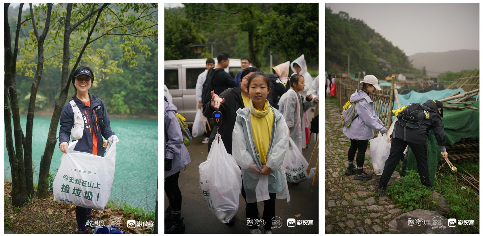 真正的户外爱好者,不会让垃圾成为山野的“纪念品”,即使徒步旅程在大雨中难度增大,也没有浇灭守护者的热忱。