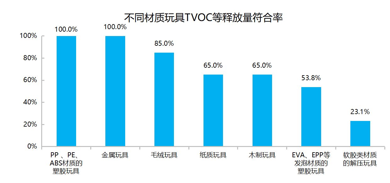 一、玩具TVOC等释放量符合率与产品材质存在直接关系