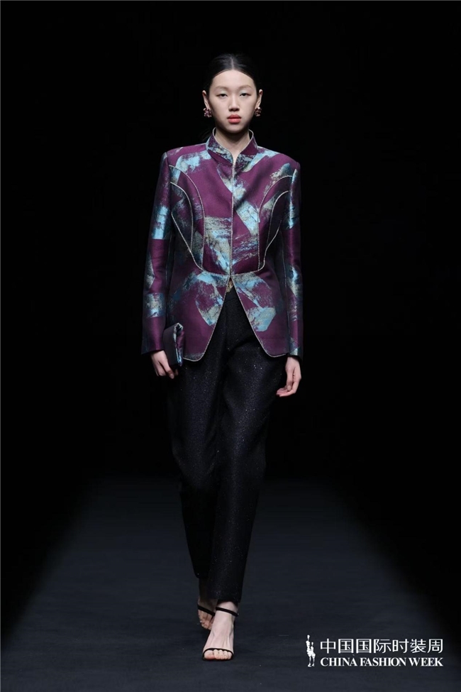 服装款式亦藏巧思,或飘逸灵动,似山间云雾缭绕;或精致细腻,如林间繁花绽放。中式经典美学元素与西装、马甲、短外套等西式廓形大胆碰撞解构,打破时空边界;不同质感的面料巧妙搭配,消解了传统服饰的厚重感,让东方雅致以更具当代感的姿态融入日常,完成传统文化的时尚化迭代与精神延续。