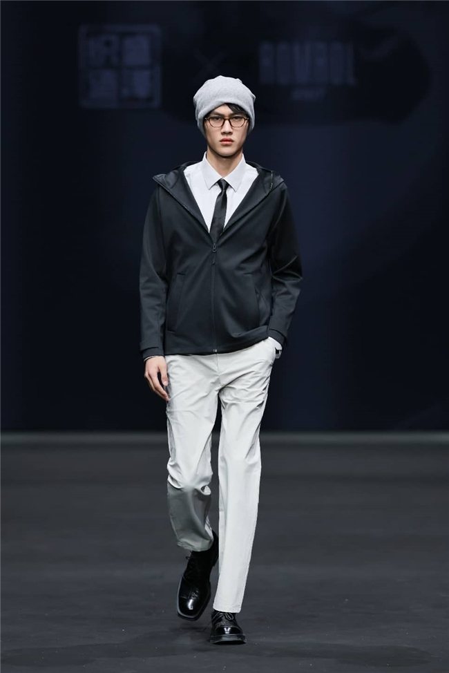 深研工艺创新的罗曼罗兰,在“雕琢”主题中,将低调高质的面料风尚深度融入线条利落、廓形松弛的功能性都市通勤穿搭中。织物从珍贵耐用的品质内核出发,精选涤纶、锦纶、氨纶等材质,经过紧密织造与柔滑后整理的双重加持,呈现细腻亲肤的绝佳触感与简约微妙的精致肌理,同时兼具防风透湿、抗皱易打理、舒适弹力等多重实用功能,能够适配都市生活、职场办公等多场景的无缝切换。一系列质感精良的面料,搭配深沉浓郁的暗色调与沉稳高级的低饱和色系,造就出闲适自在的着装形态,使得穿着者在不同场景中都能兼具舒适与格调。每一寸织物都承载着永恒的品质魅力,更为经典功能性单品带来新生。