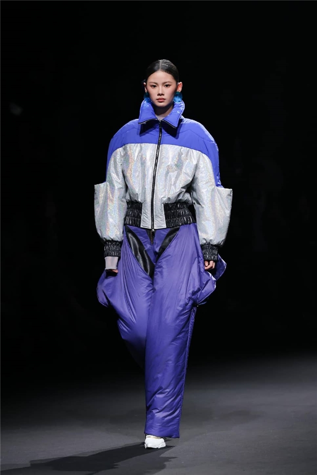 “光影”主题下,新曼丰锚定实验数字风与实用奢华的潮流内核,以艺术化手法重塑面料与服装的产品本质。人类对前沿科技的畅想被融进面料的外观表达,创造出奇幻的未来时尚美学。一系列轻盈柔韧的环保科技面料,通过创新的织造工艺,构筑起风格独特的微肌理表面和多变的光效外观,叠加科技光泽涂层,让面料在哑光与亮光的质感碰撞间,映现曼妙的感官效果,前卫的设计巧思和色彩对撞则为面料加持多维的视觉层次。迷幻感的酸性色彩在面料上流转,配合或巧趣灵动或抽象艺术的印花图案,让服装成为承载瑰丽艺术与科技力量的风尚奇迹,完美诠释了动感与奢华相融的时尚新章。