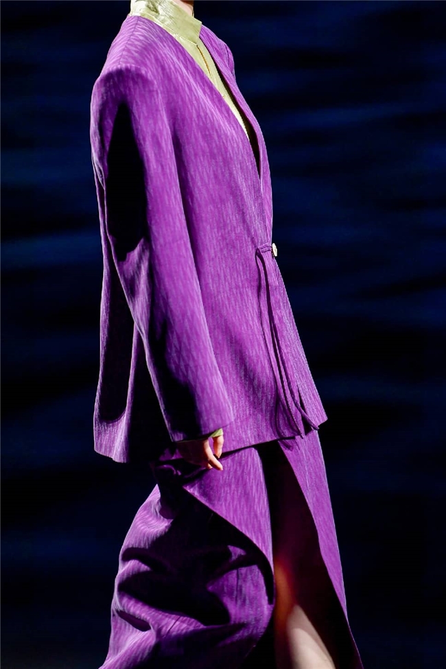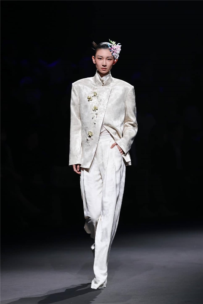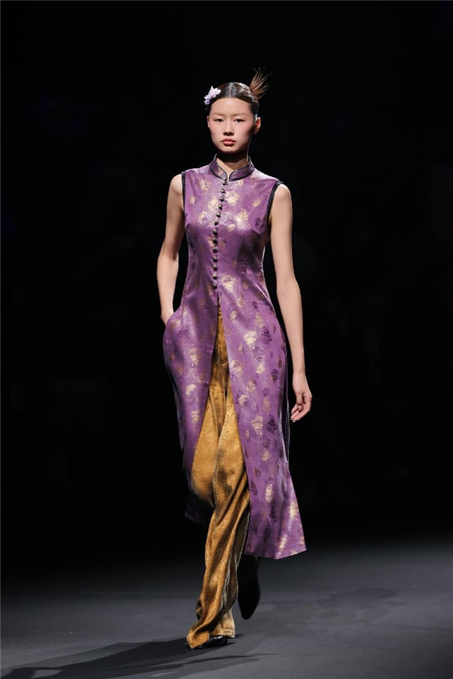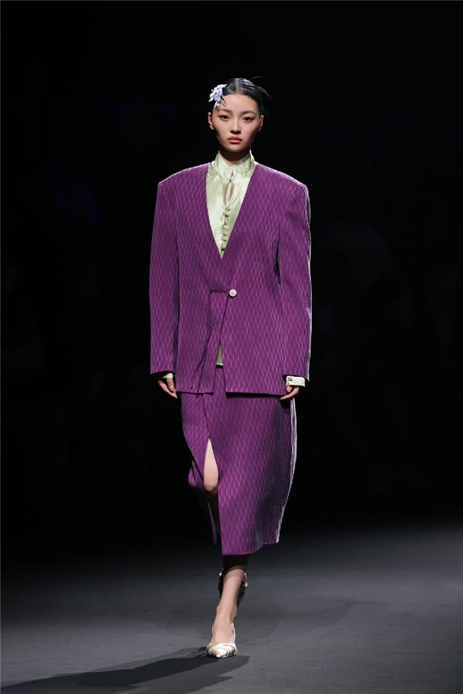 秀演特邀中国十佳时装设计师孙德春,以本季流行趋势的核心概念“聚势”为灵感主旨,紧扣“雕琢、流淌、藏蕴、光影”四大主题构建系列服装作品,将“盛泽织造”的高端面料与前沿的设计巧思深度结合,在经纬交织间,诠释科技、时尚、绿色、文化的共融之美,在传承与创新间,尽显绸都美学新生。