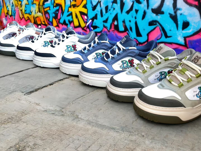而专注于年轻潮流群体的世界轻奢潮鞋D2D2,其诞生之初就选择了“字母+数字”的简单LOGO形象,其中传递的不仅是品牌独特的意大利风格与香港风格的“1+1=2”的融合风格,产品设计中融入的独特的品牌LOGO图案的各种化形应用,也进一步加深了消费者对品牌名的记忆点。