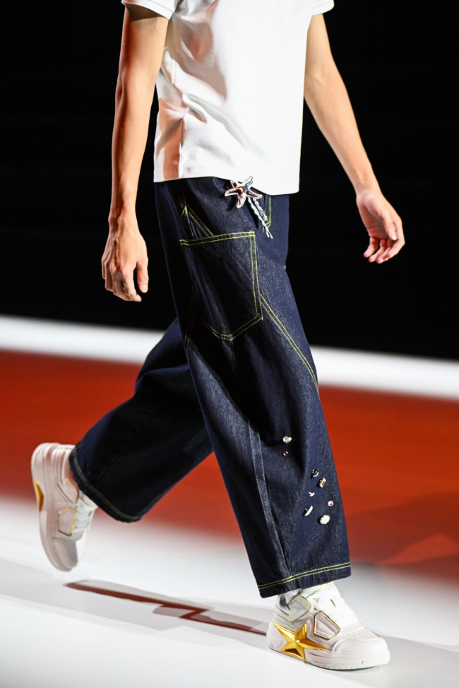 屹立潮头,总有后浪涌起。在“绘狮尚 启新元”石狮市服装设计师协会就职典礼暨新锐设计师联合发布秀上,石狮时尚产业的新生代力量正在全面崛起。HELIPORT停机坪以ACG文化解构街头潮流,KUGUY库概将正装与休闲风格进行融合,PENTAGONAL HEART五角心以“踏星步梦”的星星鞋定义东方符号。