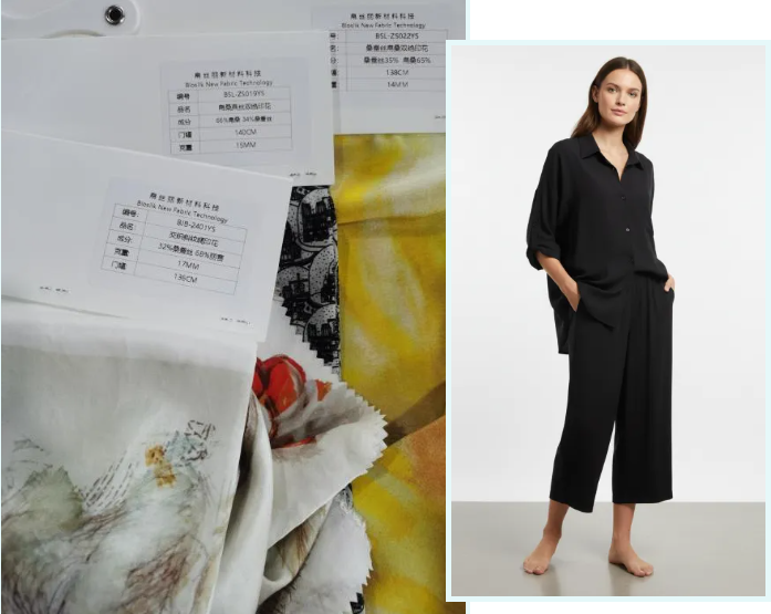 通过帛桑纤维与其他不同纤维进行科学配比,让许多材料焕发出新的生机。例如与桑蚕丝交织,既保留真丝质感,又弥补了其抗皱性差、色牢度弱的短板,开辟出高性价比的“低比例真丝”新赛道。与锦纶结合,则能呈现独特的绒感光泽;与长绒棉、绢丝等混纺,在提升面料强度的同时,赋予其干爽、丝滑的别致手感。方楚淏表示,帛桑的价值在于与各类纤维协同创新,不断拓展从高端时装到轻户外功能面料的应用边界。