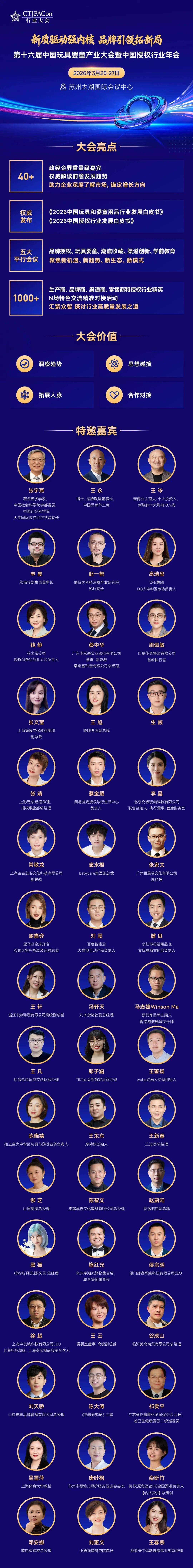 3月26日至27日,由中国玩具和婴童用品协会(以下简称中国玩协)主办的第十六届中国玩具婴童产业大会暨中国授权行业年会(简称行业大会)将在苏州太湖国际会议中心举办。行业大会汇聚40余位政经企界重量级嘉宾,深度解读前沿趋势,助力企业洞察市场脉搏,精准锚定增长航向;特设品牌授权、玩具婴童、潮流收藏、渠道创新、学前教育五大平行会议,全方位聚…